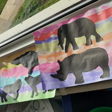Children make a wonderful African sunset using tissue paper. They then produce their own animal silhouettes using our prepared templates to stick on their sunset. Protection for the tables is suggested.