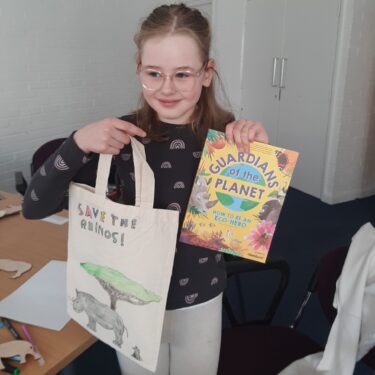 After thinking hard about biodiversity, climate change, human wildlife conflict and habitat loss, children come up with their own compelling conservation message and use it to create a shopping bag or T-shirt using fabric pens. There is a £25 charge per class to cover the costs of the materials.
