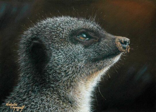 Natalie has always had a passion for wildlife and was brought up with many animals. She pursued art as a hobby whilst working in retail until she became a professional artist in 2001, specialising in Fine Art; realistic wildlife, birdlife, feline, canine and people portraits. In addition to her studio work, she takes on some commissions such as any wildlife from holiday photos, pets, scenery and portraits. She is renowned for working in pastel, but also uses charcoals and acrylics.