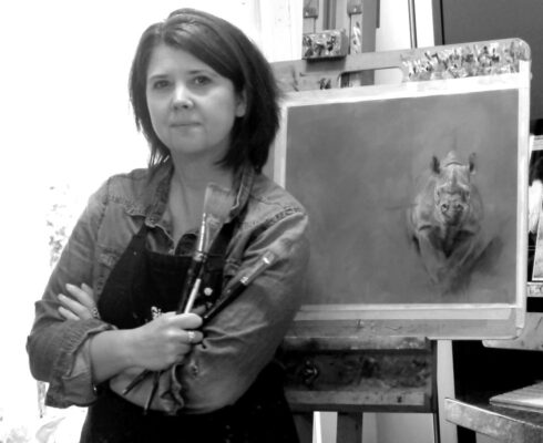 “Combining vivid colours with bold brush strokes, alongside more intricate detail, is my passion and it allows me to bring animals and birds to life. Tigers are the largest of the world’s big cats, but unfortunately their populations are endangered, with less than 4000 wild tigers left, approx 500 being the Siberian (or Amur) tiger.” – Emma Swift