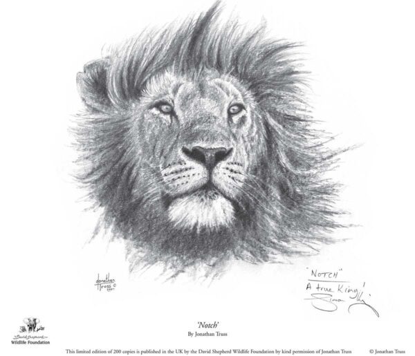 Mounted print. Limited edition of 200.Part of the Big Cat Dairies. Signed by Simon King. 100% profits from the sale of this artwork will support DSWF’s work protecting endangered species across Africa and Asia.